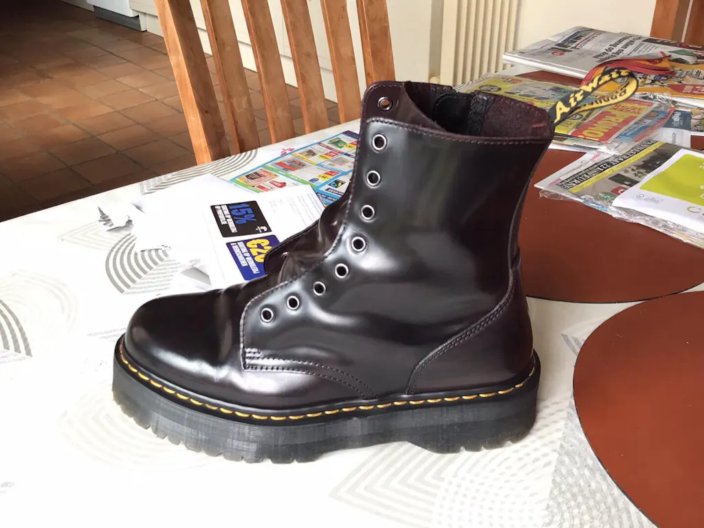 The Jadon continues to rise with its 8 eyelets and chunky platform sole! The unmistakable Dr. Martens DNA is evident: from the high-quality soft Pisa leather to the signature yellow stitching and heel loop. Whether you're dressing for a festival or heading to the office, you and your Docs are ready to take on the world!